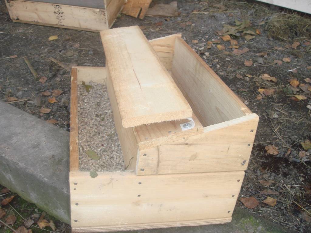 - верхняя крышка крепится на петли, чтобы у вас была возможность добавлять кормовую смесь по мере необходимости;