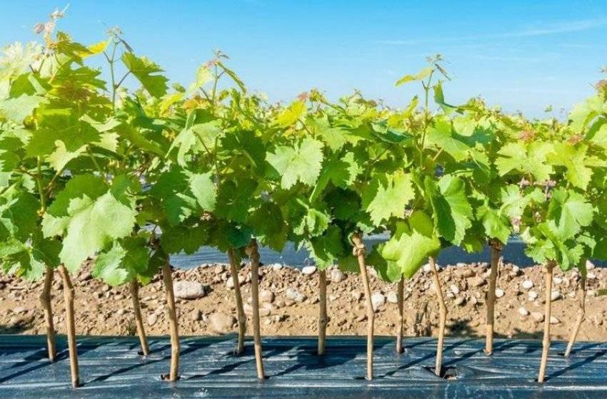 За 21 день до посадки саженцев, на яму кладут чёрную полиэтиленовую плёнку, чтобы место для винограда хорошенько прогрелось.