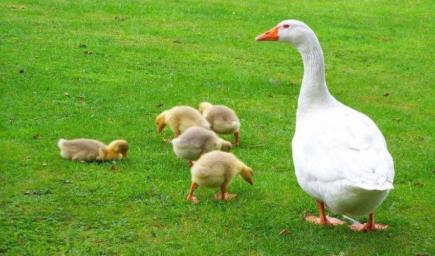 Пощипывание свободной травы оградит птенцов от разных болезней. Единственное, что требуется сделать, поставить по территории специальные, маленькие поилки. В присутствии самки гусята научатся самостоятельно выживать.