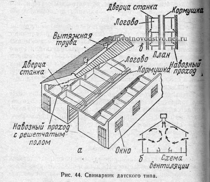 Под свинарник можно использовать любое помещение, главное, чтобы оно находилось вдалеке от жилых построек. Это защитит от запаха и шума. Свинарник должен хорошо вентилироваться, с влажностью воздуха не более 75%.