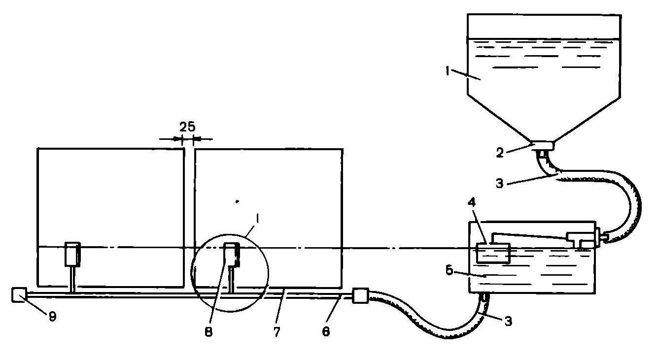 | Автономная поилка | Автономная система подачи воды. Бункерная кормушка в сочетании с модулями поильных систем полностью автоматизирует подачу необходимых ресурсов на большой ферме. | ![]() Устройство таких поилок состоит из нескольких частей: • резервуар с подготовленной водой (1); • распределительный резервуар (5); • нужное количество распределительных шлангов (3); • очищающий фильтр (2); • бак (5); • магистральные трубы (6); • клетки (7); • поильник (8); • поплавок (4); • ревизионный кран (9). ![]() | Значительно упрощают процесс выпаивания; оптимальный вариант для больших фермерских хозяйств. | Дорогостоящий вариант; не подходит заводчикам домашних кроликов. |